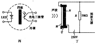 C.丙图电路中,当有烟雾进入罩内时,光电三极管上就会因烟雾的散射而有光的照射,表现出电阻的变化