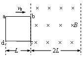 5、选择题 如图所示,边长为L、总电阻为R的正方形导线框abcd放置在光滑水平桌面上,其bc边紧靠磁感应强度为B、宽度为2L、方向竖直向下的有界匀强磁场的边缘。现使线框以初速度v0匀加速通过磁场,下列图线中能定性反映线框从进入到完全离开磁场区域的过程中,线框中感应电流变化的是