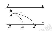 4、选择题 如图a、b两个带正电的粒子,以相同的速度先后垂直于电场线从同一点进入平行板间的匀强电场后,a粒子打在B板的a′点,b粒子打在B板的b′点,不计重力,则( )