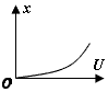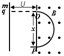 2、选择题 如图所示,一个静止质量为m,带电量为+q的带电粒子(不计重力),经电压为U的电场加速后垂直进入磁感应强度为B的匀强磁场中,并打在P点。设OP=x,能正确反映x与U之间函数关系的x-U图象如图中的