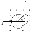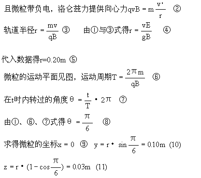3、简答题 如图所示,在地面上方的真空室内有相互垂直的匀强电场和匀强磁场,匀强电场的方向指向Y轴的负方向,场强E=4.0×V/m,匀强磁场的方向指向X轴的正方向,磁感强度B=0.40T.现有一带电微粒m以200m/s的速度由坐标原点沿Y轴正方向射入真空室后立即做匀速圆周运动.从微粒由O点射入开始计时,求经时间
