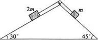 2、选择题 两光滑斜面的倾角分别为30O和45O,质量分别为2m和m的两个滑块用不可伸长的轻绳通过滑轮连接(不计滑轮的质量和摩擦),分别置于两个斜面上并由静止释放;若交换两滑块位置,再由静止释放.则在上述两种情形中正确的有( ?)