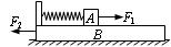 3、选择题 如图,一轻弹簧左端固定在长木板M的左端,右端与小木块m连接,且m、M间及M与地面的接触面均光滑。开始时,m和M均静止,现同时对m、M施加等大反向的水平恒力F1和F2,从两物体开始运动以后的全部运动过程中,弹簧形变不超过其弹性限度。对于m、M和弹簧组成的系统,下列说法中正确的有:①由于F1、F2等大反向,故系统机械能守恒;②当弹簧弹力大小与F1、F2大小相等时,m、M各自的动能最大;③由于F1、F2大小不变,所以m、M各自一直做匀加速运动;④由于F1、F2等大反向,故系统的总动量始终为零。