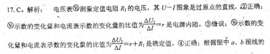 ? ③UaIa等于电阻R与电压表并联的阻值,UbIb等于电阻R与电流表串联的阻值,所以UaIa<UbIb.故③错误,④正确.