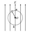 2、选择题 在竖直向上的匀强电场中,一根不可伸长的绝缘细绳的一端系着一个带电小球,另一端固定于O点,小球在竖直平面内做匀速圆周运动,最高点为a,最低点为b.不计空气阻力,则(?)