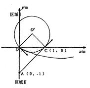5、计算题 在水平光滑的绝缘桌面内建立如图所示的直角坐标系,将第I、第II象限合称为区域一,第III、IV象限合称为区域二,其中一个区域内有大小、方向均未标明的匀强电场,另一个区域内有大小为? 2×10-2T、方向垂直于水平桌面的匀强磁场.把一个比荷为