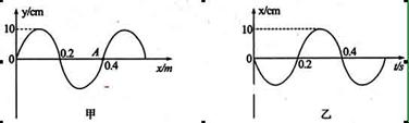 1、填空题 (6分)一列简谐横波,某时刻的波形如图甲所示,从该时刻开始计时,波上A质点的振动图象如图乙所示,