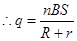 4、计算题 交流发电机转子有n匝线圈,每匝线圈所围面积为S,匀强磁场的磁感应强度为B,匀速转动角速度为ω,线圈内电阻为r,外电路电阻为R。当线圈由图中实线位置匀速转动90°到达虚线位置过程中,求:通过R的电荷量q为多少?
