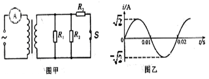 。开关S闭合。已知通过R1的正弦交流电如图乙所示,则: