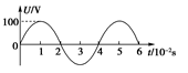 5、选择题 一个100匝矩形导线圈产生的正弦交流电的电压随时间变化的规律如图所示.由图可知( )