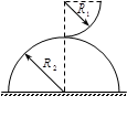 3、选择题 如图所示,一小滑块从光滑的1/4圆弧的最高点由静止滑下,滑出槽口时速度方向为水平,槽口与一个半球顶点相切,若要使小物块滑出槽口后不沿半球面下滑,则R1、R2应满足的关系是(? )