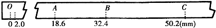 (b)乙同学实验所用重锤的质量m=1.0kg,打点记时器的频率为50Hz,打下的纸带如图所示(图中的数据为从起点O到该点的距离),则在打B点时,重锤的动能EkB=______J,从开始下落到打B点时,重锤的重力势能减小量是______J(g=9.8m/s2,结果取两位有效数字)