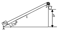 1、计算题 如图所示,倾斜滑道上有一质量为m1的滑块,滑块通过一轻质细绳吊起一质量为m2的小桶。已知滑道的倾角为θ=37°,AB段、CD段光滑,BC段粗糙,滑块m1与BC段的动摩擦因数为μ=0.8,长度AB=BC=3m、CD=6m,m1=m2=lkg。开始时将滑块放在轨道上的A点,此时小桶离地高度h=6m。不计滑轮的摩擦并忽略滑块、小桶的大小,且小桶落地后脱离挂钩。现将系统由静止释放,g=10m/s2,求: