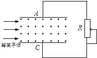 2、选择题 如图是磁流体发电机的示意图,在间距为d的平行金属板A、C间,存在磁感应强度为B、方向垂直纸面向外的匀强磁场,两金属板通过导线与变阻器R相连,等离子体以速度v平行于两金属板垂直射入磁场.若要增大该发电机的电动势,可采取的方法是等离子体RAC( )