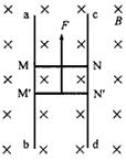 1、计算题 如图,ab和cd是两条竖直放置的长直光滑金属导轨,MN和M"N"是两根用细线连接的金属杆,其质量分别为m和2m。竖直向上的外力F作用在杆MN上,使两杆水平静止,并刚好与导轨接触;两杆的总电阻为R,导轨间距为l。整个装置处在磁感应强度为B的匀强磁场中,磁场方向与导轨所在平面垂直。导轨电阻可忽略,重力加速度为g。在t=0时刻将细线烧断,保持F不变,金属杆和导轨始终接触良好。求