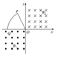 2、选择题 在图中直角坐标系xOy的一,三象限内有垂直纸面的匀强磁场,磁感应强度大小均为B,方向如图所示.半径为l,圆心角为60°的扇形导线框OPQ从图示位置开始以ω=