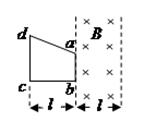 1、选择题 直角梯形线框abcd如左图所示,ab与cd间的距离为l。两条平行虚线之间存在匀强磁场,虚线间的距离也为l,磁场方向垂直纸面向里,其左侧虚线恰好与ab边相切。现令线圈以恒定的速度v沿垂直于磁场区域边界的方向穿过磁场区域。取沿a→b→c→d→a的感应电流为正,则在线圈穿越磁场区域的过程中,感应电流I随时间t变化的图线可能是下图所示的?(?)