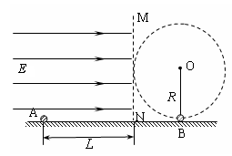 3、计算题 (20分)如图所示,光滑绝缘水平面的上方空间被竖直的分界面MN分隔成两部分,左侧空间有一水平向右的匀强电场,场强大小