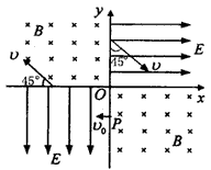 3、计算题 如图所示,在直角坐标系的第Ⅰ象限和第Ⅲ象限存在着电场强度均为E的匀强电场,其中第Ⅰ象限电场沿x轴正方向,第Ⅲ象限电场沿y轴负方向。在第Ⅱ象限和第Ⅳ象限存在着磁感应强度均为B的匀强磁场,磁场方向均垂直纸面向里。有一个电子从y轴的P点以垂直于y轴的初速度v0进入第Ⅲ象限,第一次到达x轴上时速度方向与x轴负方向夹角为45°,第一次进入第Ⅰ象限时,与y轴夹角也是45°,经过一段时间电子又回到了P点,进行周期性运动。已知电子的电荷量为e,质量为m,不考虑重力和空气阻力。求: