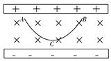 3、选择题 如图所示,两极板间存在竖直向下的匀强电场和垂直纸面向里的匀强磁场,已知一离子在电场力和洛伦兹力的作用下,从静止开始自A点沿曲线ACB运动,到达B点时速度为零,C点是运动的最低点,忽略重力,以下说法错误的是(?)
