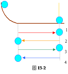 当n为偶数时,相碰次数就是该偶数的数值,如n=4,则相碰次数为四次。球将停在距B球S处的C点。A球停留位置如图13-2所示