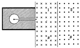 1、计算题 有一个放射源水平放射出α、β和γ三种射线,垂直射入如图所示磁场。区域I和Ⅱ的宽度均为d,各自存在着垂直纸面的匀强磁场,两区域的磁感应强度大小B相等,方向相反(粒子运动不考虑相对论效应)。