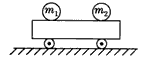 4、选择题 如图所示,在一辆表面光滑的小车上,有质量分别为m1、m2的两个小球(m1>m2)随车一起匀速运动。当小车突然停止时,如果不考虑其他阻力,设车足够长,则两个小球