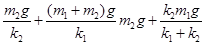 本题解析:弹簧L1伸长量ΔL1=(m1+m2)g/k1;弹簧L2伸长量ΔL2=m2g/k2,这时两个弹簧的总长度为L1+L2+.
