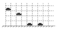 5、实验题 如上右图所示是一辆汽车从高台水平飞出后所摄得的频闪照片,照片上的虚线为用铅笔画出的正方形格子,若汽车的长度是3.6 m,取g=10m/s2