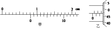 2、实验题 ⑴ 图甲为20分度游标卡尺的部分示意图,其读数为 mm;图乙为螺旋测微器的示意图,其读数为 mm。