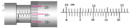 4、实验题 如图所示,螺旋测微器的示数为 mm;游标卡尺的示数为 cm。