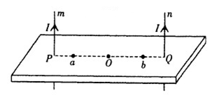2、选择题 如图所示,两根长直导线m、n竖直插在光滑绝缘水平桌面上的小孔P、Q中,O为P、Q连线的中点,连线上a、b两点关于O点对称,导线中通有大小、方向均相同的电流I.下列说法正确的是