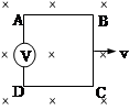 1、选择题 如图所示,在磁感应强度为B的匀强磁场中,有一边长为a的正方形线框在磁场中做速度为v的匀速运动,不计线框的内阻。在线框的AD边串一个内阻为R的伏特表,则AD两点间的电势差和伏特表的读数分别为(?)