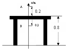 2、填空题 如图所示,桌面离地面的高度为0.8m,若将坐标系原点定在水平桌面上,取竖直向上的方向为坐标轴的正方向,通过测量A、B两点距离桌面的距离都为0.2m。则A点的坐标为 ,B点的坐标为 。
