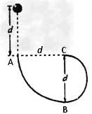 5、计算题 如图所示,质量为m的小球自由下落d后,沿竖直面内的固定轨道ABC运动,AB是半径为d的