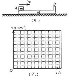 3、简答题 如图(甲)所示,质量为M、长L=1.0m、右端带有竖直挡板的木板B,静止在光滑水平面上.质量为m的小木块(可视为质点)A,以水平速度