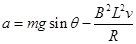 本题解析:导体棒刚开始向上运动时速度最大,这时的加速度也最大是2gsinθ,沿斜面方向导体棒的受力情况是: