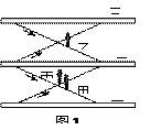 甲、乙、丙三人到某超级商场去购物,他们分别在三个都正常运行的电梯上向上一层楼或向下一层楼运动,如图1所示。关于他们运动的说法中正确的是? (? )