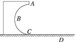 3、计算题 (12分)如图所示,一固定在竖直平面内的光滑的半圆形轨道ABC,其半径R="0.5" m,轨道在C处与水平地面相切,在C处放一小物块,给它一水平向左的初速度v0="5" m/s,结果它沿CBA运动,通过A点,最后落在水平地面上的D点,求C、D间的距离x.取重力加速度g="10" m/s2。
