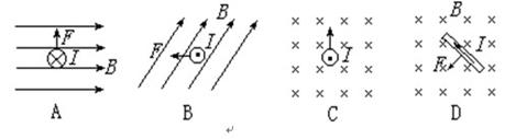 3、选择题 某同学画的表示磁场B、电流I和安培力F的相互关系如图 ,其中正确的是