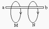 3、选择题 如图所示,在水平放置的光滑绝缘杆ab上,挂有两个相同的金属环M和N。当两环均通以图示的相同方向的电流时,则(?)