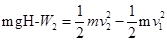 3、选择题 跳水运动员从高H的跳台以速度v1水平跳出,落水时速度为v2,运动员质量为m,若起跳时,运动员所做的功为W1 , 在空气中克服阻力所做的功为W2 ,则