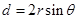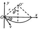 (2)设某一粒子进入磁场时,速度v的方向与x轴成 角,在磁场中做圆周运动的轨道半径为r,该粒子从x轴上射出磁场的位置与O点的距离为d,画出带电粒子在磁场中的运动轨迹如图所示,