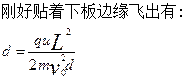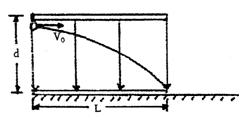 3、计算题  如图所示,两平行金属板水平放置,板间存在竖直向下的勻强电场。一带电粒子以初速度V0沿上板边缘垂直于电场线射入匀强电场,它刚好贴着下板边缘飞出。已知匀强电场两极板长L,间距为d,(粒子的重力忽略不计)求:(16分)