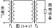 2、简答题 (15分)某发电厂通过两条输电线向远处的用电设备供电.当发电厂输出的功率为P0时,额定电压为U的用电设备消耗的功率为P1.若发电厂用一台升压变压器T1先把电压升高,仍通过原来的输电线供电,达到用电设备所在地,再通过一台降压变压器T2把电压降到用电设备的额定电压,供用电设备使用,如图13-4-17所示,这样改动后,当发电厂输出的功率仍为P0,用电设备可获得的功率增加至P2.试求所用升压变压器T1的原线圈与副线圈的匝数比N1/N2以及降压变压器T2的原线圈与副线圈的匝数比n1/n2各为多少?