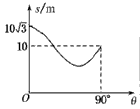 2、选择题  有一个斜面,其底边固定且水平,斜面倾角θ在0~90°内变化,一质量为1 kg的物体以一定的初速度自斜面底端沿斜面上滑,滑到最远点的位移随斜面倾角θ变化的规律如图所示,则在θ=30°时,物体上滑的位移是
