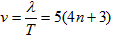 分别以n=0,1,2…代入①~④式,即得可能的波速和频率为