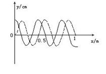 2、选择题  一列横波在某时刻的波形图如图中实线所示,经 2 × 10-2s后的波形如图中虚线所示。则该波的波速v和频率f可能是(?)