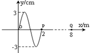 3、计算题  (9分)如图所示,一列沿x轴正方向传播的简谐横波在t=0时刻的波形如图中的实线所示,此时这列波恰好传播到P点,且再经过1.2s,坐标为x=8m的Q点开始起振,求: