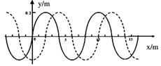4、计算题  一列横波在x轴上传播,在t1 = 0时刻波形如图中实线所示,t2 = 0.05s时刻波形如图中虚线所示.